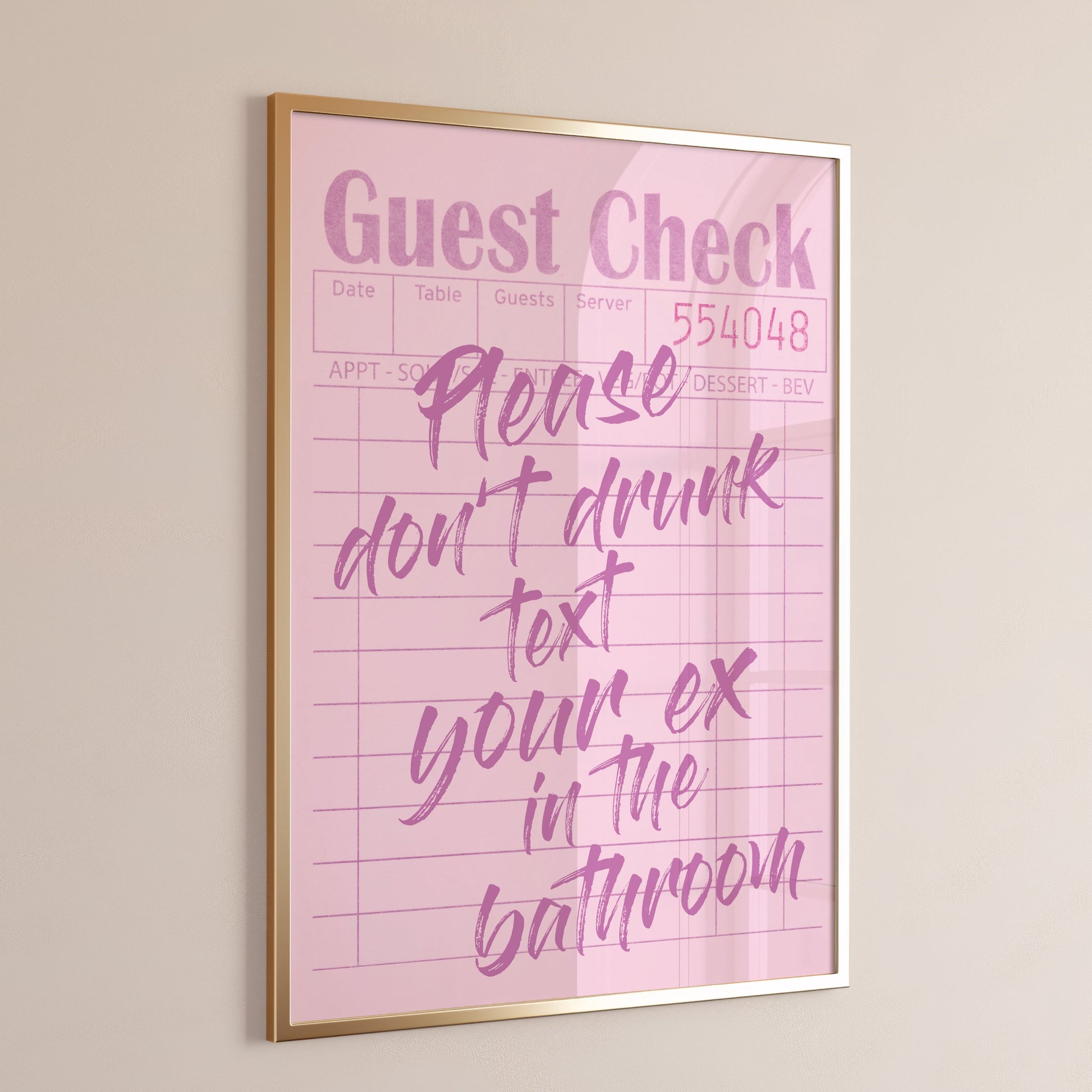Guest Check, Please Don't Drunk Text Your Ex In The Bathroom, Unframed Card Art Print